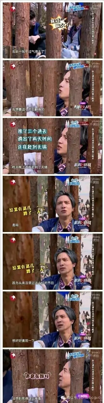 大概是因为很耿直吧:“我推了三个通告,调出了两天时间,昨天晚上连夜赶到无锡,因为从来没录过这么红的节目,想好好表现一下,没想到死得那么难看”。