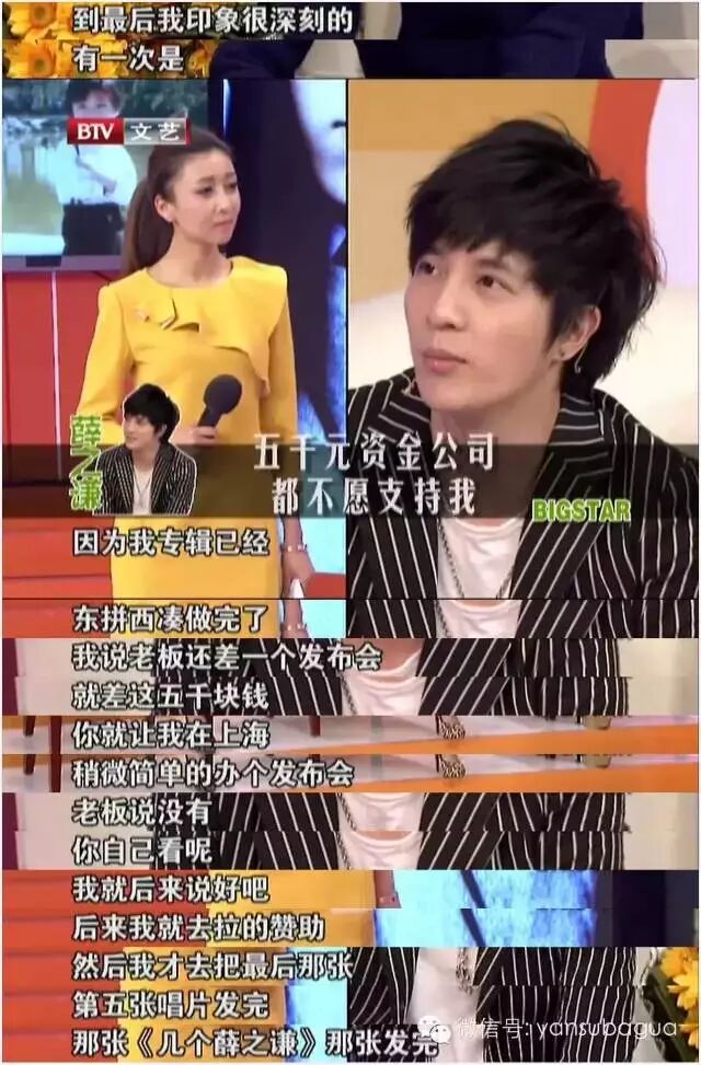 甚至到了自己东拼西凑凑成一个专辑,还差5000做发布会,公司都不愿意拿钱。最后是薛之谦自己去拉的赞助。