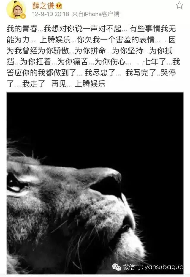 但跟张杰斩钉截铁要解约不一样,薛之谦是待在上腾最久的艺人了。