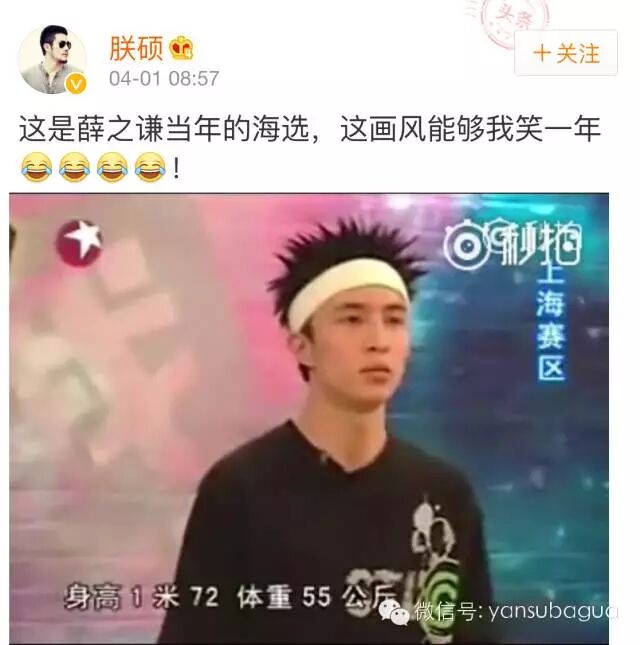而三月底柯以敏当超女评委口出恶言被全网攻击的时候,薛老师当年参加《我型我秀》的海选视频又出现在微博上