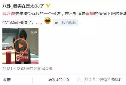 之后微博马上出现了薛老师早年的cctv专访,有wifi可以看视频↓