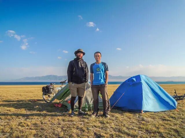 在乌苏骑了一段,用电停在一个小卖部啃馕,看到一个人从他面前骑车而过,两人用蹩脚的英语打过照面之后,用电方知对方是日本人,叫福田谕(Sotoshi)。他已经在中国骑行长达三个月之久。