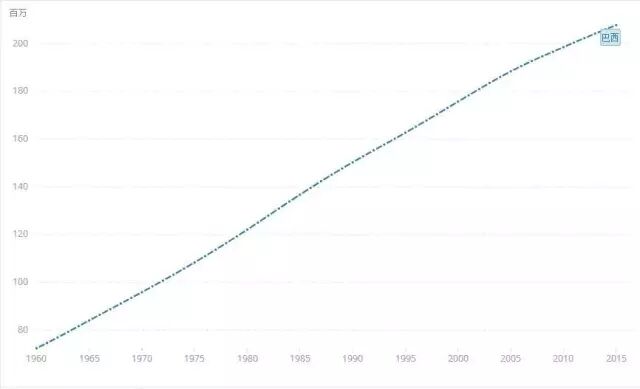 截止到2015年,巴西人口总数为2.08亿,15-64岁的人口占比69.1%,接近美国66.3%的水平,平均每两个成年人需要供养养一个老人或孩童,而中国该数据为73.2%。
