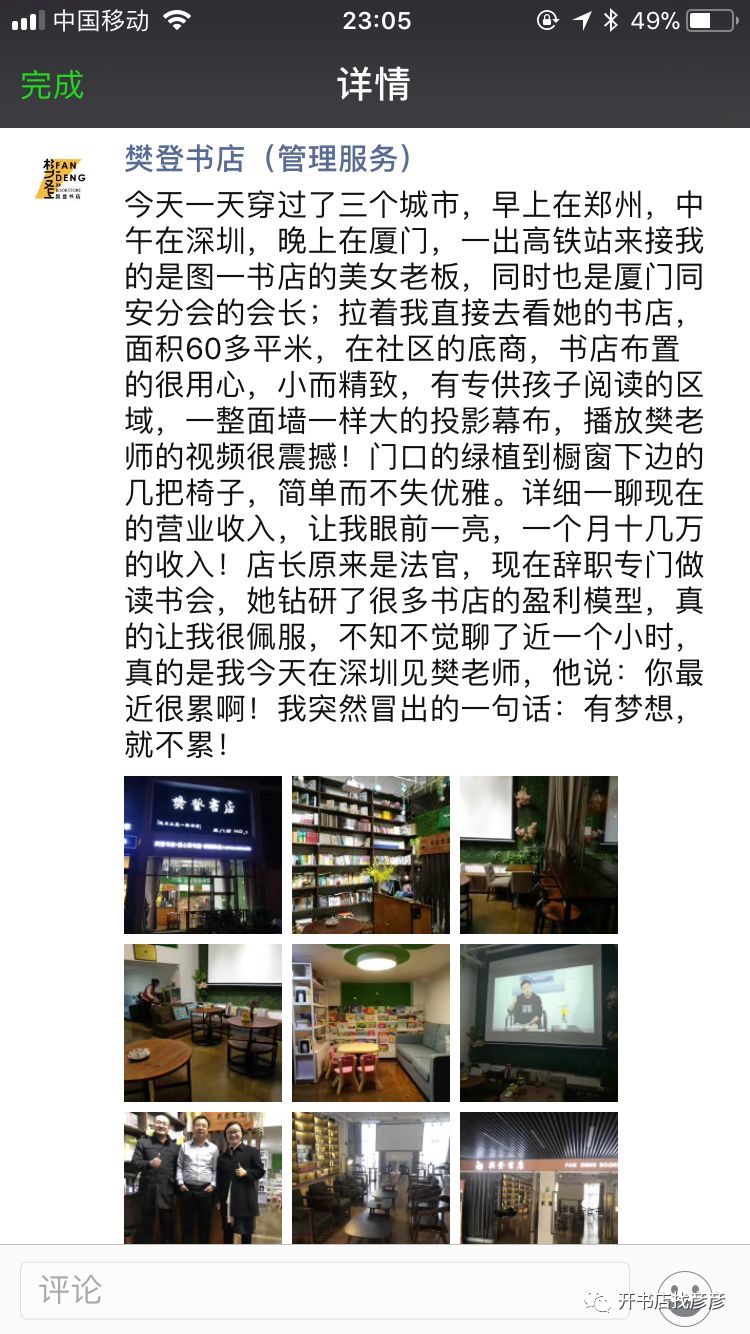 前几天,我们樊登书店的全国负责人吴宁先生,一下飞机就来到我们这家小书店,我们聊了一下书店的现状。于是他感触颇深地发了一个圈儿,引发了全国各分会会长热议,强烈要求我要分享经验。