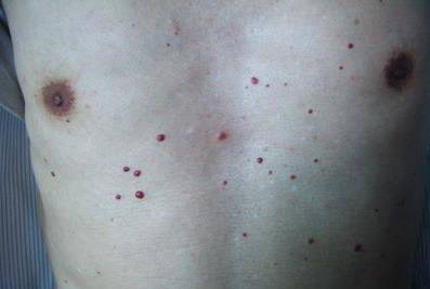 血痣基本上长在身上,手上,腿上,就像打完针的血泡,一个红点,大的像枸杞子那么大。血痣提示脂肪痰湿的积滞,容易发生脂肪肝、肝硬化、胆囊炎等疾病,对见于脂肪肝、慢性肝炎的病人,主要长在胸、腹部。血痣越大越多,肝的代谢功能越差,脂肪代谢差,容易血脂过高,胆固醇过高。