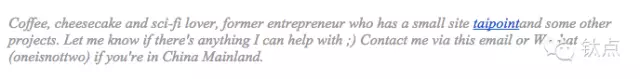 当然在国内除了微博外还有知乎,V2EX,Ruby China等等你可以建立自己的小简介档案的社区。比如我就是在知乎听说上面那位仁兄的。