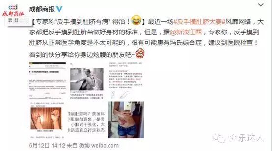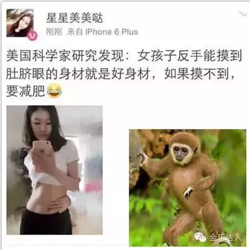 最近很流行反手摸肚脐,冰姐的朋友圈被各种瘦纸们的“炫腹照”刷屏,妹纸,你这么瘦你是长臂猿吗?