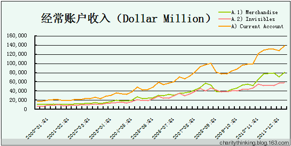 注:A.1) Merchandise为形货物的出口,A.2) Invisibles为无形的服务出口,A) Current Account为经常账户的出口总收入。