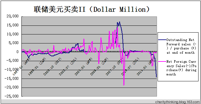 注:Net Foreign Currency Sales(-)/Purchase(+) during month=Foreign currency Purchase -Foreign currency Sales,表示在这一月里对美元的净销售金额(其值小于零)/购置金额(其值大于零)。