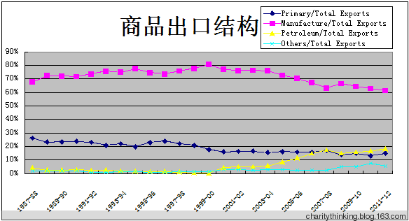 注:Primar/Total Exports即Primary Products初级产品在产品品总出口中所占的比重,Manufacturer/Total Exports,