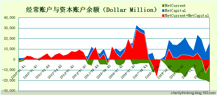 注:NetCurrent表示经常账户净值=经常账户收入-经常账户支出,NetCapital表示资本账户净值=资本账户收入-资本账户支出,NetCurrent+NetCapital表示经常账户净值+资本账户净值的Overall Balance总体平衡状况。NetCurrent<0表示经常账户赤字,NetCapital<0表示资本账户赤字,NetCurrent+NetCapital≠0表示需要货币的转移才能维持国际账户的平衡。