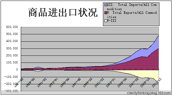 注:V代表总的产品出口金额,III代表总的产品进口金额,V-III代表产品出超(V-III>0)/入超(V-III<0)。在图例与标注之间使用了不同的名词叙述Products,在此处由于是以市场价值进行标价的,因此商品与产品所代表的价值都是固定的,可以等同使用。