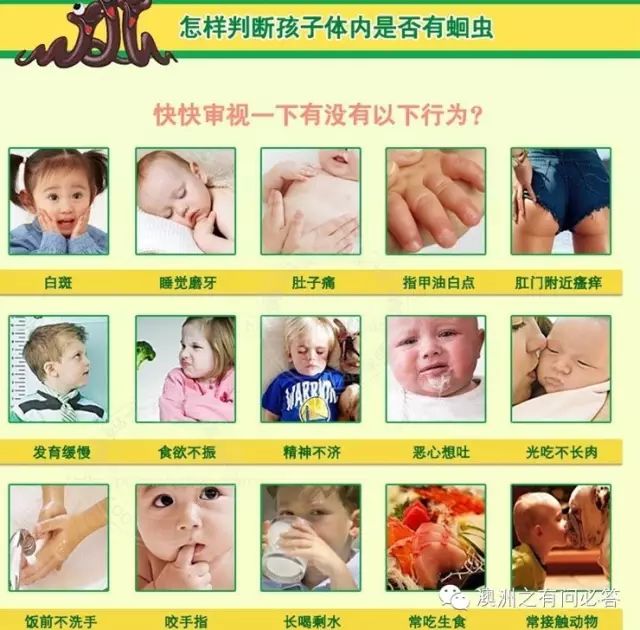 澳洲医生建议全家一年驱虫一次,特别是国内的饮食卫生问题,更加要注意!蛔虫啥症状?很多没有症状,有的常有脐周有阵发性腹痛,有的食欲不好,有的食欲很好却日渐消瘦,有的伴有腹泻,大便中带有不消化的食物并排出蛔虫;有的有低热,烦躁不安,晚上易惊醒、磨牙,蛔虫常引起严重的并发症,诸如肠梗阻、急性阑尾炎、胆道蛔虫症和急性胆道炎、急性腹膜炎等疾病都有可能由蛔虫引起。