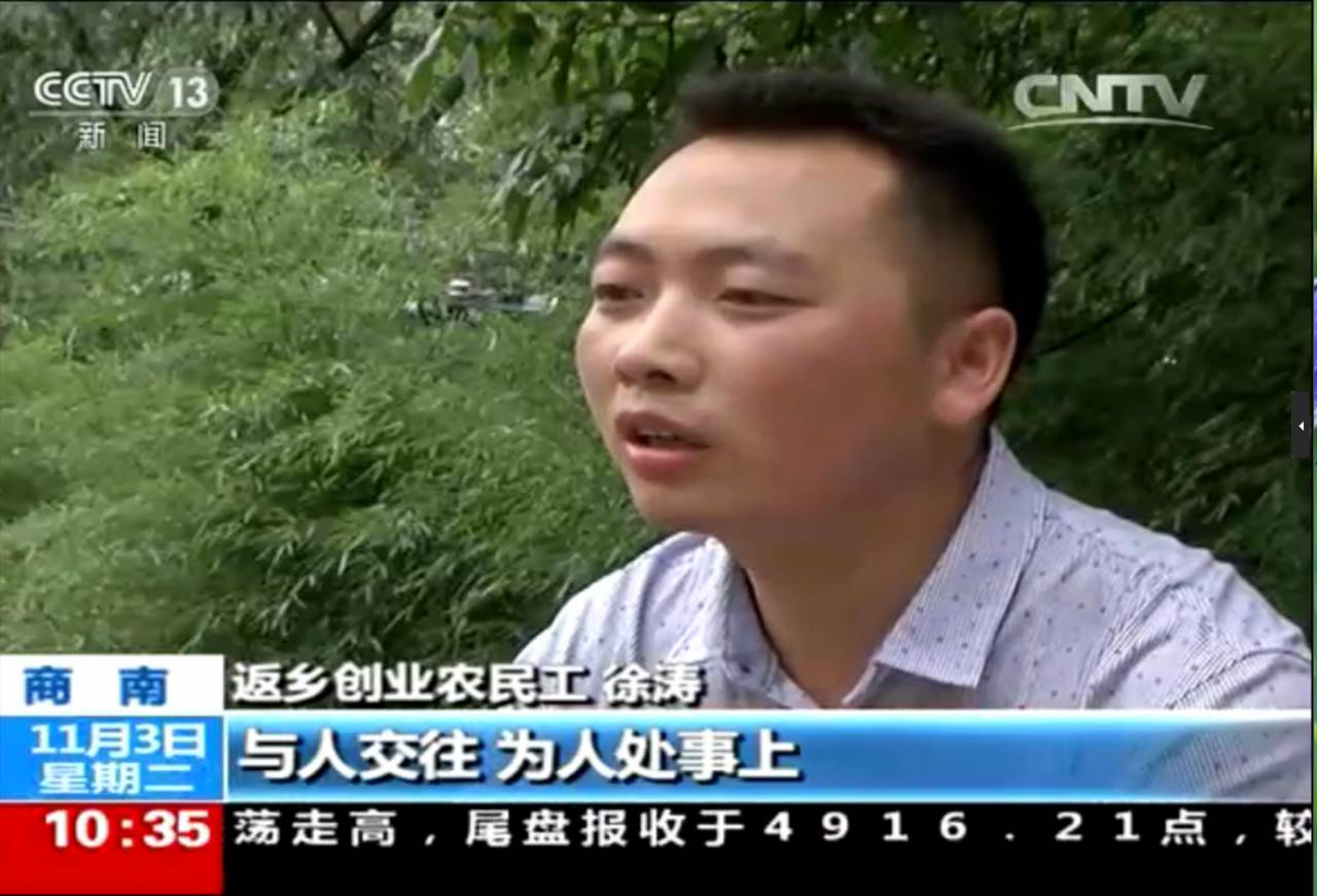 2015年底,徐涛作为商南的返乡创业典范,他的事迹被广泛报道,先后登上了中央电视台的《新闻联播》《新闻直播间》《焦点访谈》。