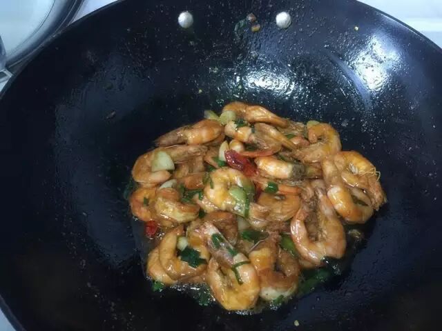 锅里可以多放点油烧热,葱姜蒜爆香,放入虾翻炒变色,加入料酒、酱油、鸡精、盐及少许糖,翻炒均匀。加少许水焖两分钟即可。