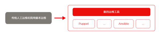 从传统运维到“互联网 +”新运维工具的变化,从场景化到工具化的过程就是一个将运维活动从人的理 解向工具的认知转变过程,并且实现了将重复性强 的被动式响应转变为由工具自动且主动完成的方式。