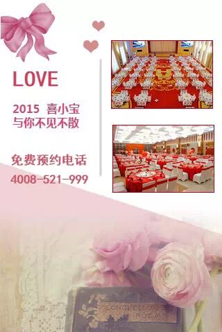 亲们,还等什么,赶紧咨询起来吧,婚宴档期管够!喜小宝预订婚宴有保障!咨询电话4008-521-999!也可以微信骚扰小宝哦,接受适当调戏,哈哈~~~
