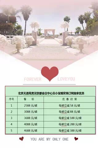 预订婚宴3088元/桌,立减88元,即可以只用3000元/桌拿下!