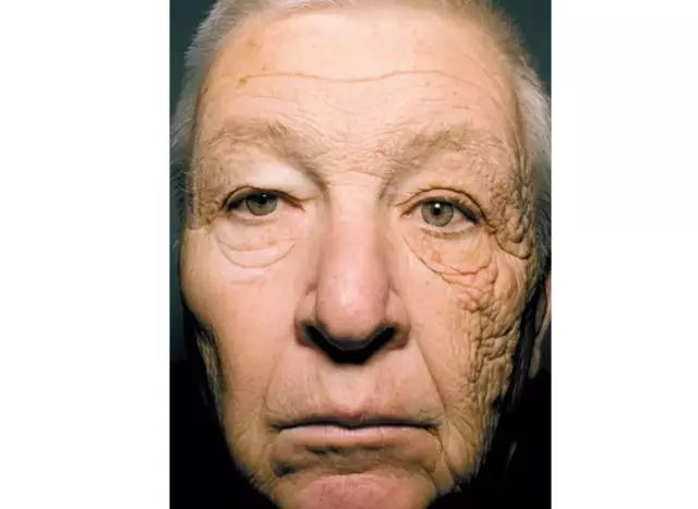 说到光老化,国外有一个很有名的例子。一个卡车司机从41岁开始,开车的时候,阳光总是从左侧的玻璃洒在他的左脸上。28年后也就是他69岁时,正常老化的右脸要比遭受光辐射伤害的左脸年轻好几倍。