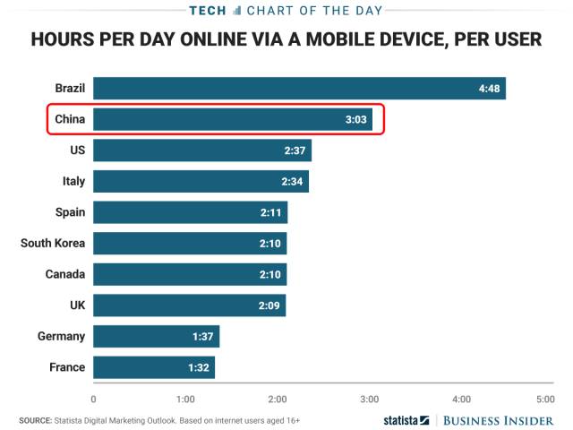 去年Statista发布的调研数据就表明中国人平均每天玩3小时手机,名列世界第二,但很多人应该远不止三个小时吧~反正我是不止的(捂脸)。