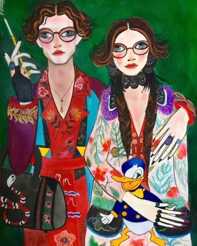 Gucci创意总监 Alessandro Michele说过我的画作,“看起来天真幼稚,却又迷人得不行。”他不仅邀请我去看Gucci 2015秋冬女装秀,还让我以这场秀为灵感画了好几幅画。甚至在2015年,Gucci于上海民生现代美术馆举办的“已然未然”展览里,Alessandro Michele为我腾出了一个巨大的空间,一口气展出了我所有的画作。