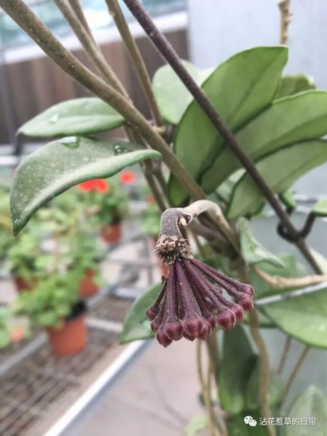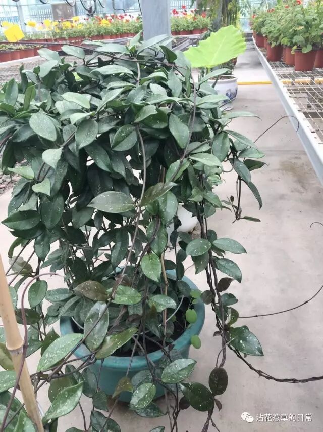 有同事拿回家了一盆,过段时间说球兰花开了。怎么可以这么快……我自己种的还没有开花,还是在疯狂长叶子!一问才知道,她在家将球兰做了牵引,两个月之后的冬天在有暖气阳光不错的的客厅开花了。