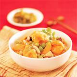 辅料:胡萝卜50g、青豆30g、鲜小香菇5朵