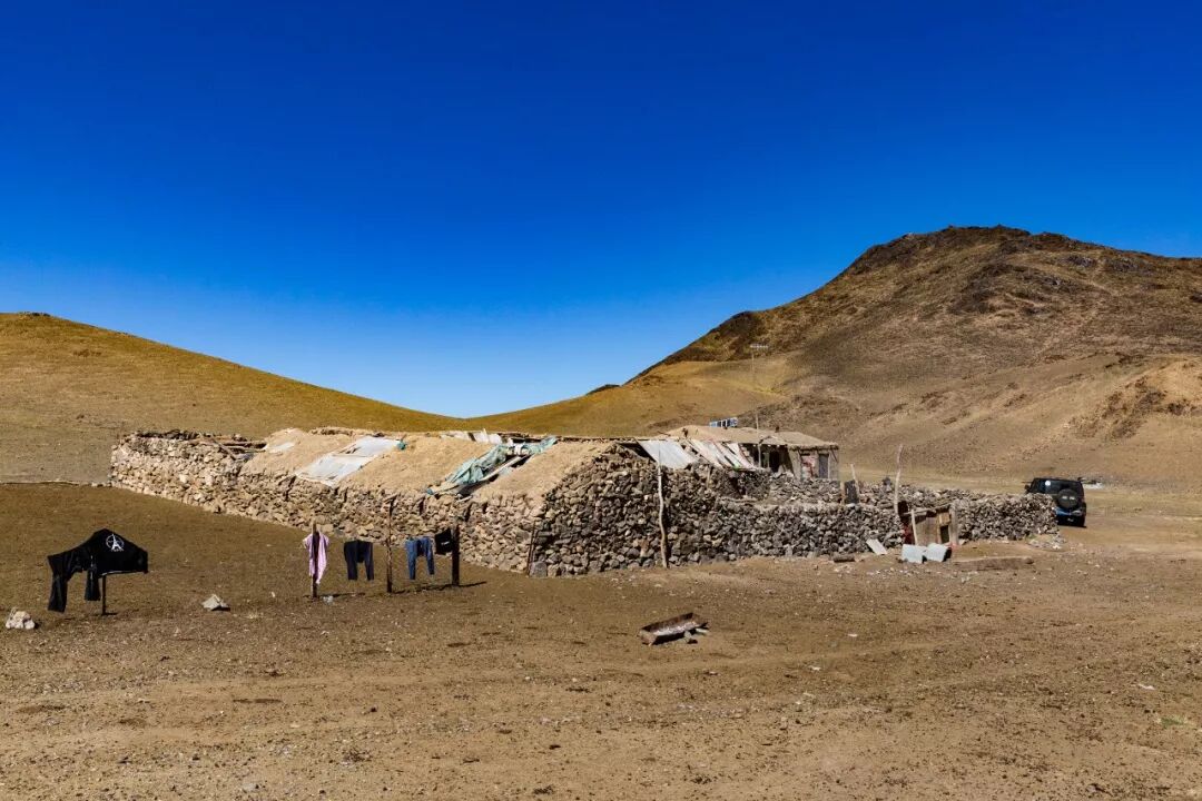 这是在群山环抱中孓然独立一户的牧民家。看看她家周围的环境吧