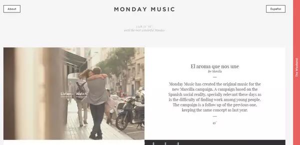 Monday Music 的页面设计整齐干净,配色也够清爽。由于设计师使用了响应式布局,所以也可以在各种设备上浏览。