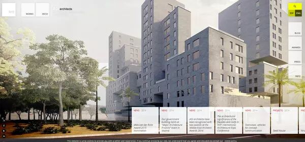 这是一个独特的建筑类网站,漂亮的建筑与风景自然而然地作为背景而存在,它独特的地方在于,网站的导航和内容都是用大大小小的方块构成,,分布在网站的上下左右,非常有趣。