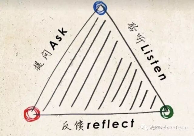 这个三角形的起点是提问,拐点是聆听,终点是反馈。