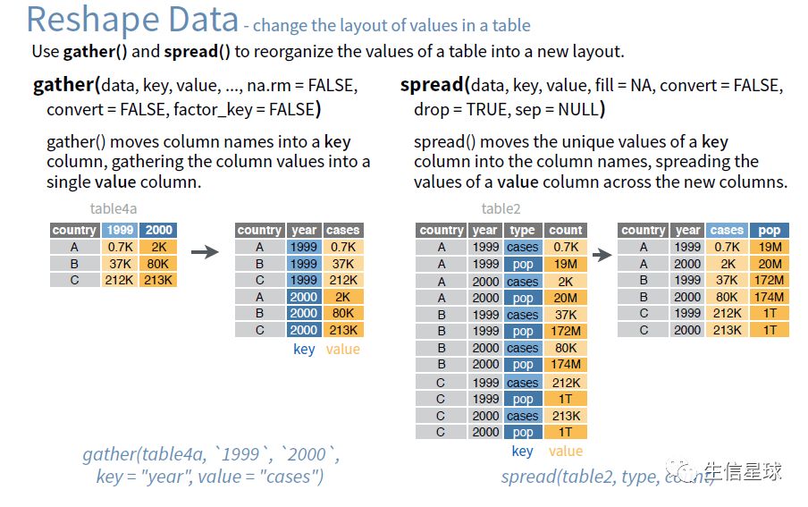 > gather(data,key,value,...,na.rm=FALSE,convert=FALSE,factor_key=FALSE)