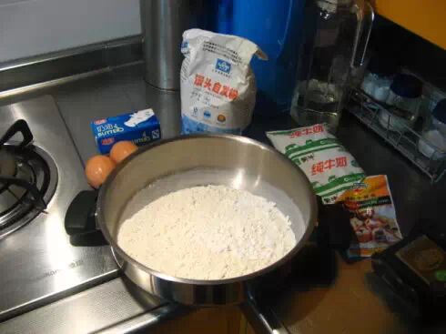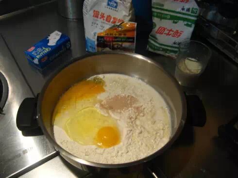 做蛋糕:蛋糕粉,牛奶,鸡蛋,油拌匀
