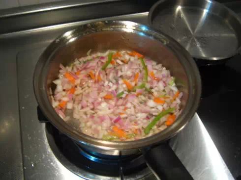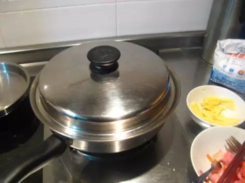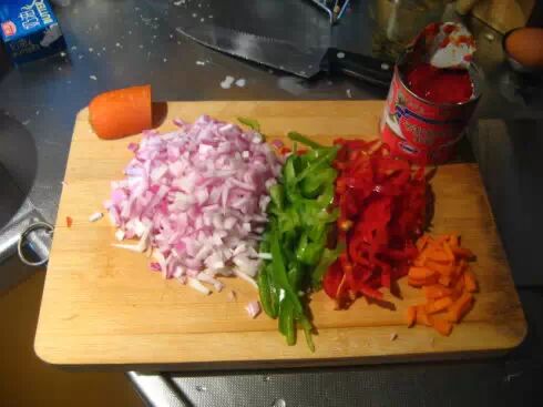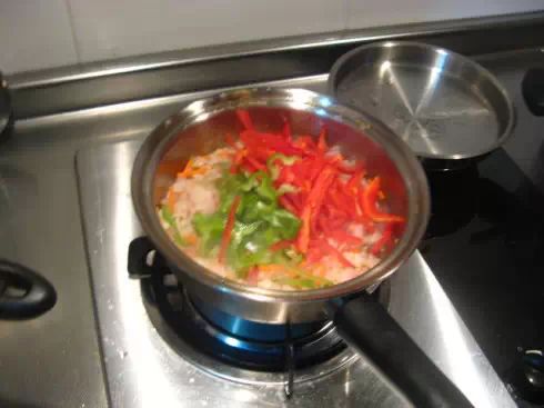 主材:洋葱1个切丁、青红椒各一个切丝、口蘑100g(或香菇)切丝、熟培根200g切片(或香肠、也可虾仁,尤鱼等,按各人口味配置)(也可适量放入甜玉米粒、青碗豆等)