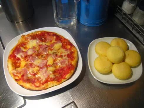 大功告成喽!好香的披萨和蛋糕呀,开吃喽!