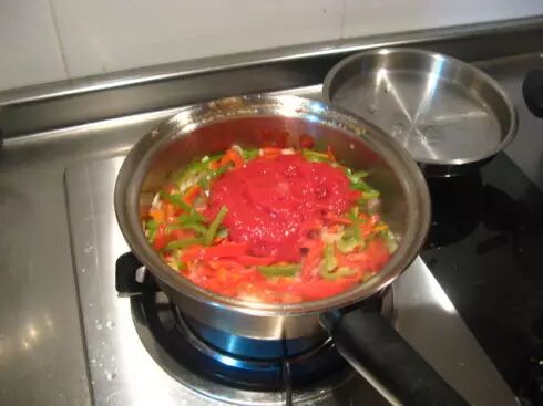做法:放洋葱煸炒,放入青红黄椒、放口蘑、放蕃茄酱、放糖炒匀,如水份太多可收汁,炒完后装盘备用。