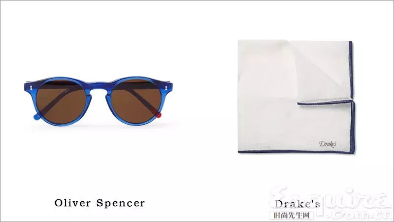 挑战从头到脚的蓝色潮流,皇家蓝双排扣西装和眼镜视觉上是激烈的,搭配色调柔和的浅蓝色衬衫,最后用口袋巾留白带来呼吸感。充满活力的颜色组合在一起真是魔性又瞠目,想象一下如果把夹克换成海军蓝就不会有有这样的结果。皇家蓝的时髦似乎无心所就,潇洒来得浑然天成。