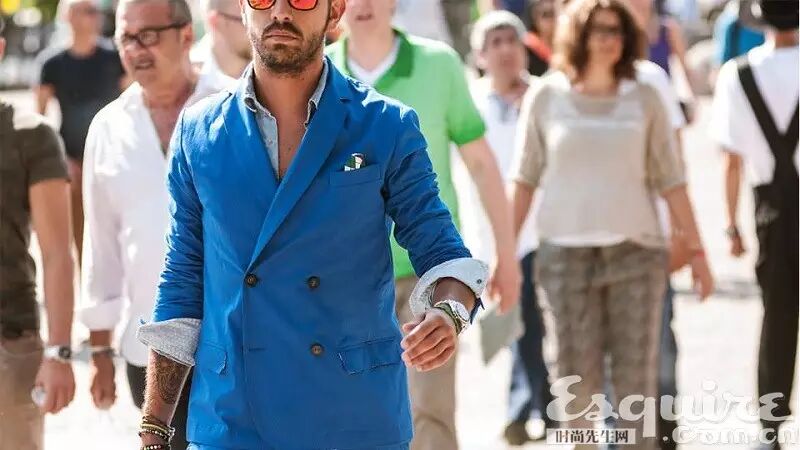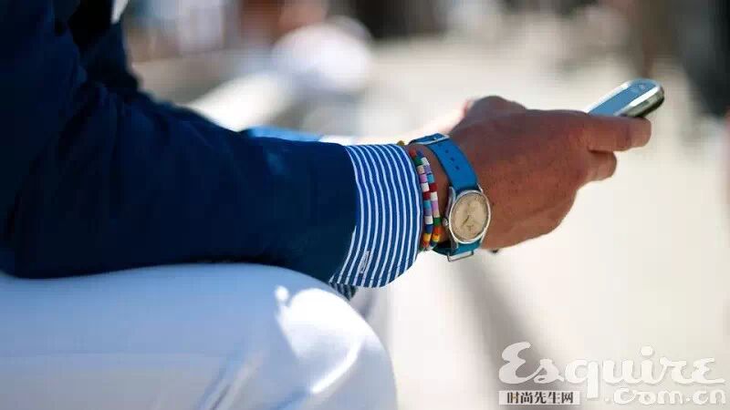 你给人的印象是怎样的?是中规中矩还是风流倜傥?照片中的男人绝对属于后者,我们可以想象他躺在昂贵游艇上端着杜松子酒的场景。推翻陈旧的规矩演绎新式贵族的独特气质,在传统海军蓝夹克和白色斜纹棉布裤的组合上,皇家蓝条纹衬衫与彩色手链俏皮、另类混搭一起,漫不经心的时髦碰撞使得文雅贵族保留经典韵味的同时,也突显了一个好品味男人的幽默感。