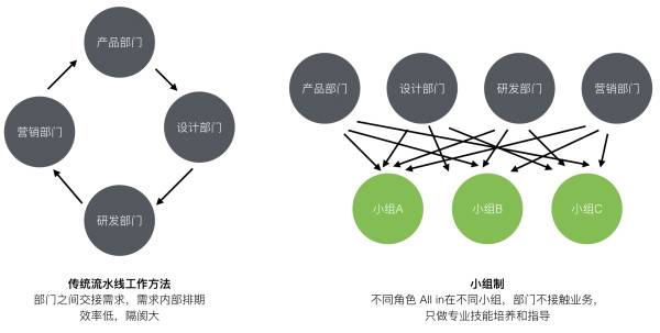 很多设计师可能会觉得自己在大公司部门之间的隔阂比较多,很难去深入了解其他人在做什么或者参与上游。我的建议最好的办法是把设计团队小组化,小黄车目前的组织架构就是小组化,公司分了很多 feature team ,然后不同部门的不同专业角色混合的加入到这些feature team中为了一个共同的目标而贡献。因为目标一致,团队靠的比较近所以自然也没有那么多隔阂,大家会一起讨论和说出idea。
