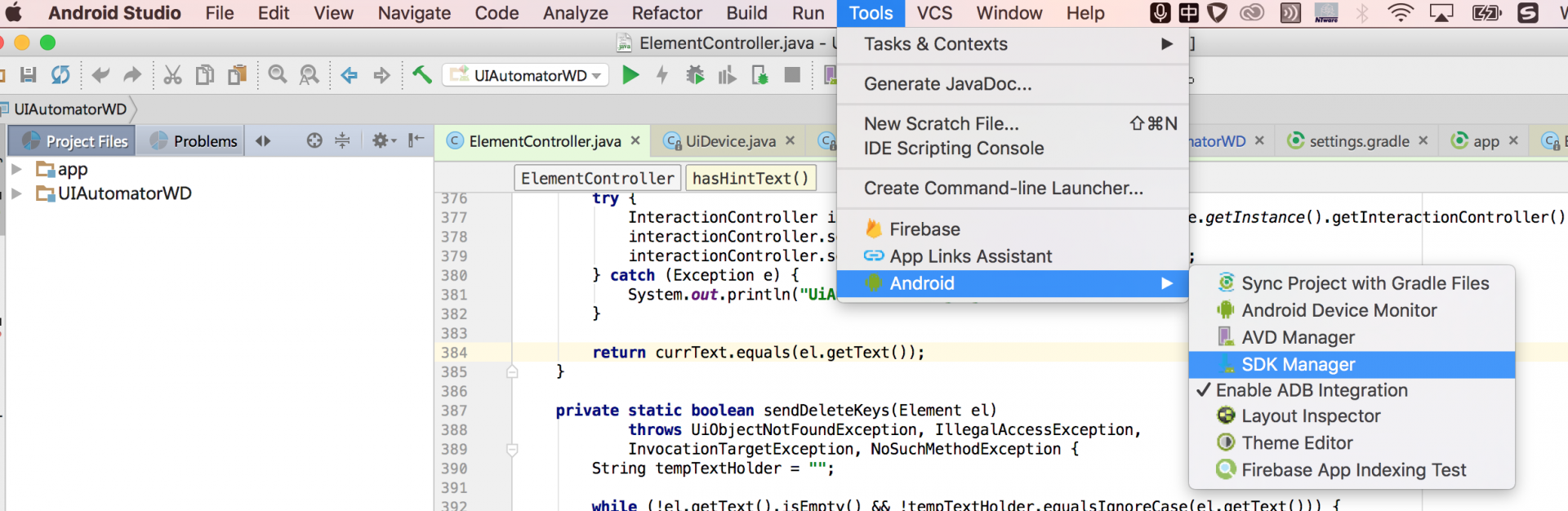 AndroidStudio -> Tools -> Android -> SDK Manager