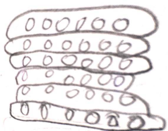 师:我现在按照这个故事进行演示,首先,我有48支铅笔,要放到6个笔袋里,第一个放2支,第二个放3支......