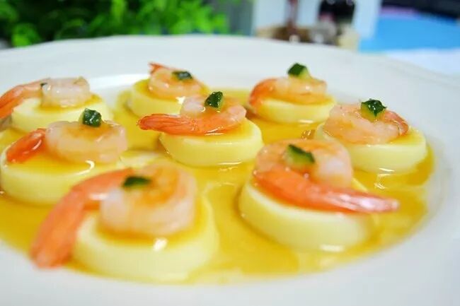 虾仁上放上黄瓜丁点缀下,把芡汁倒入小碗,浇在蒸好的豆腐虾仁上。日本豆腐质地嫩滑,加上虾仁的鲜香口感,简直就是完美的搭配