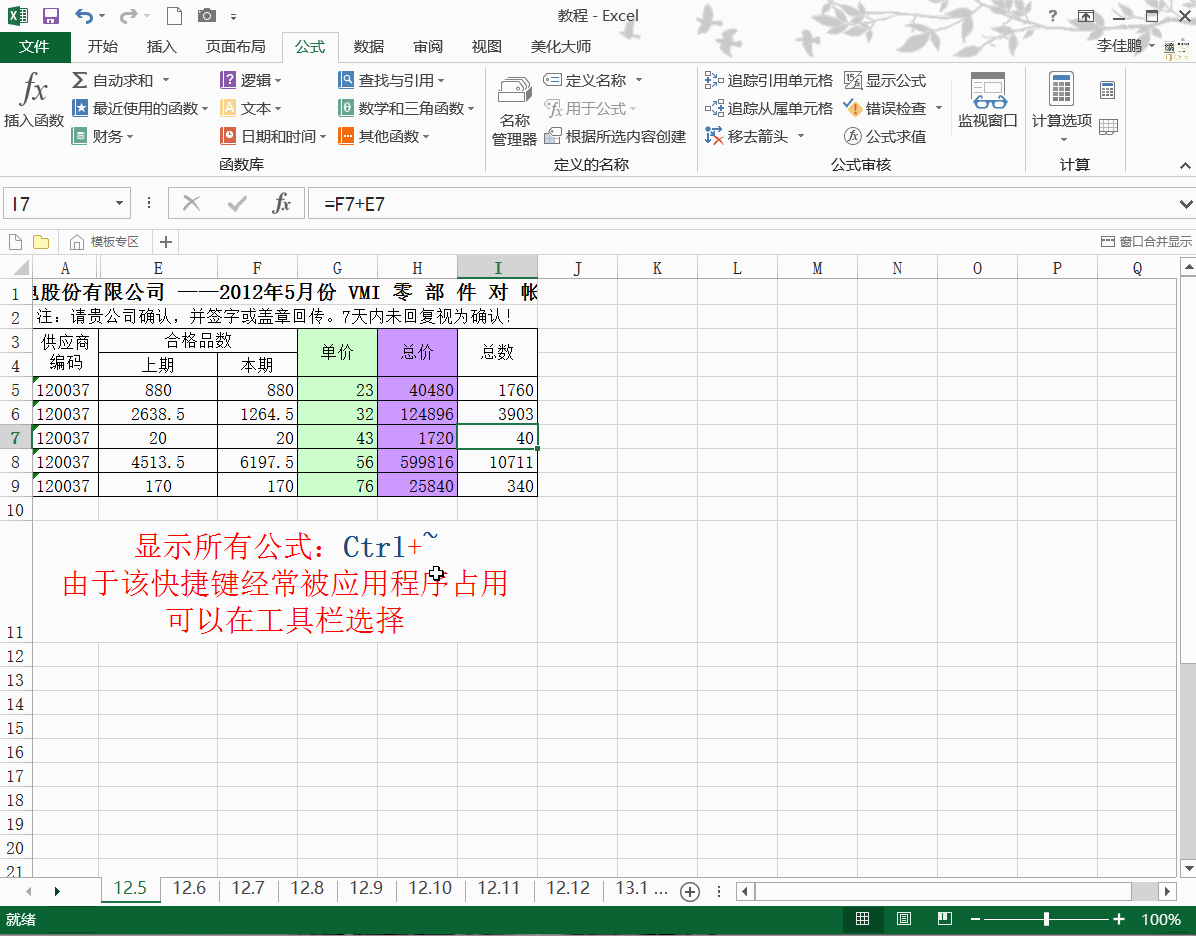 公式——显示公式进行查看,再点击一次显示公式即可关闭
