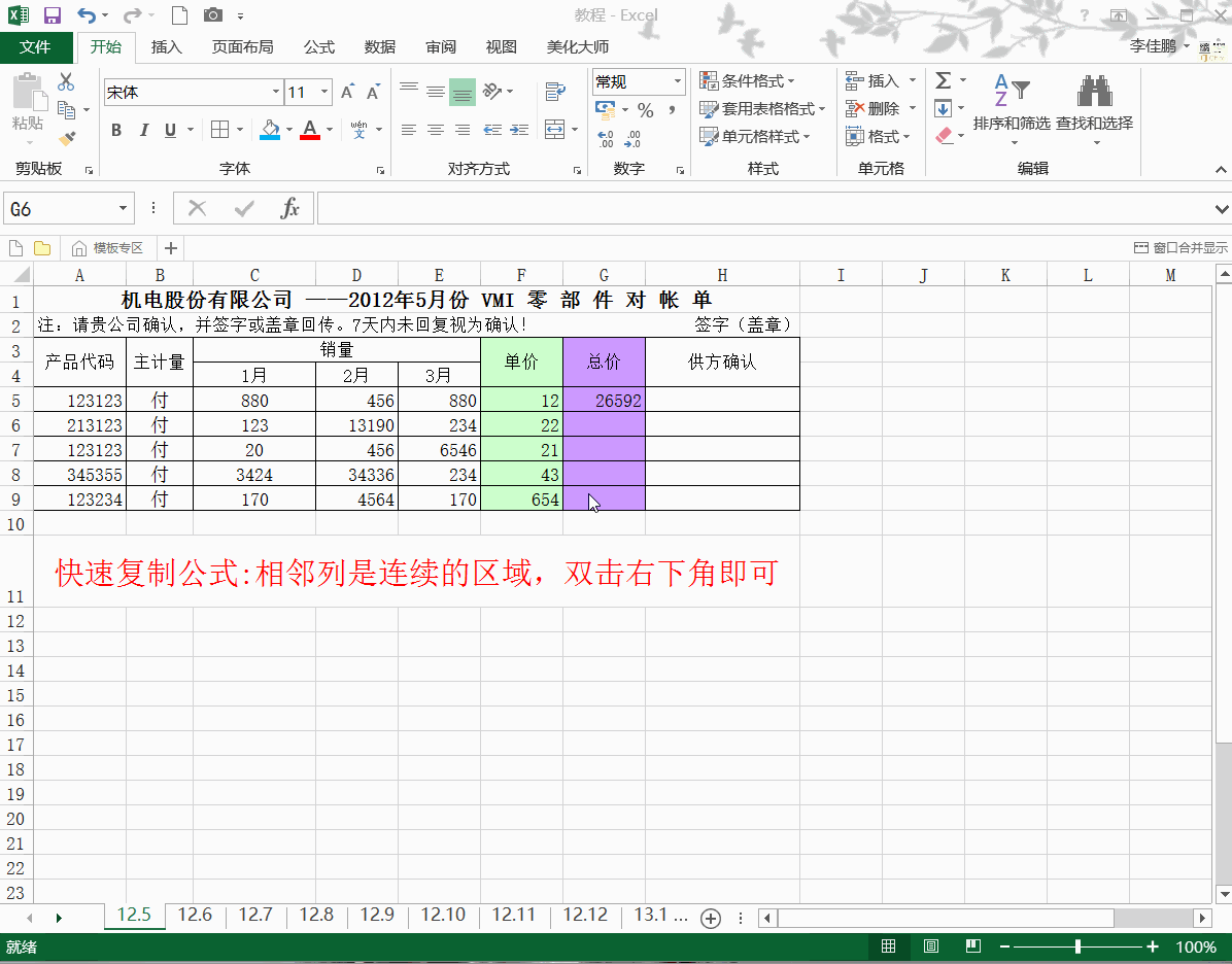 快速复制公式