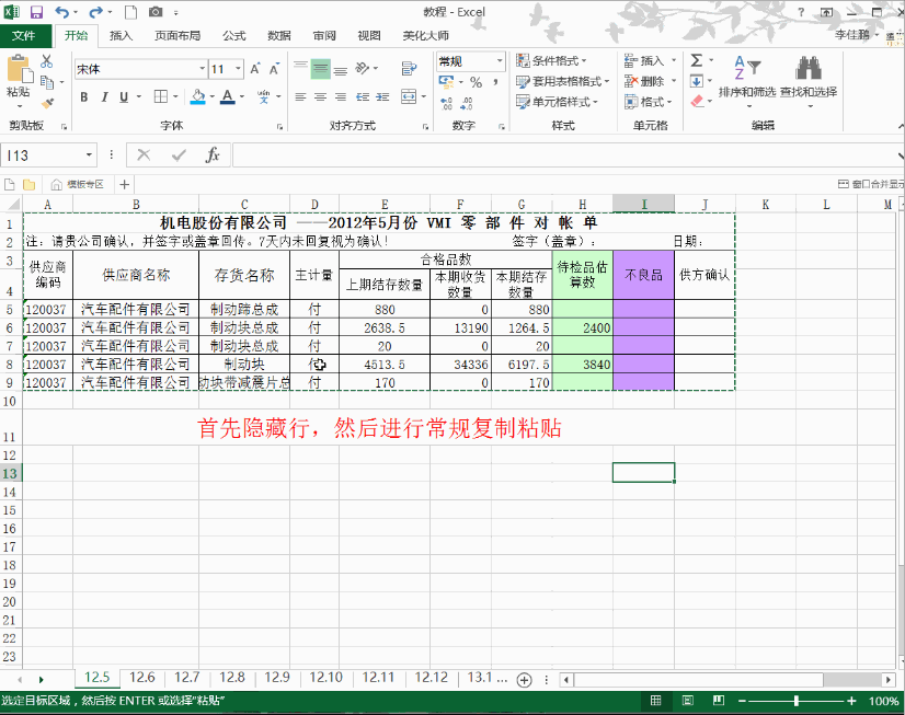 不复制被隐藏的行