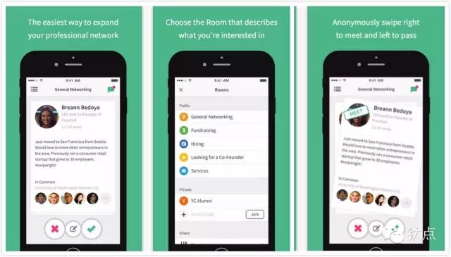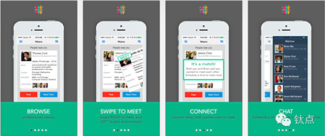 相对而言我更喜欢Weave,它真正体现了Tinder模式在职场社交上的应用可能。另两个看起来和专业人士或者职场社交毫无关系,而只是将看脸社交这一个特点,或者说Tinder广为人知的噱头照搬到了Linkedin的使用者那。