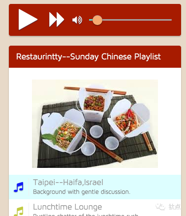 背景音乐分两款,一种是显示为蓝色音乐符号的,录自特定餐馆的声音(比如本清单第一位的,来自以色列海法的一家叫台北的中餐馆的环境音),另一种是纯粹的音乐,比如中餐爱好者非常熟悉的茉莉花等。爱好者可以在真实环境音和中餐馆经典配乐中进行选择,或者两者随机播放。