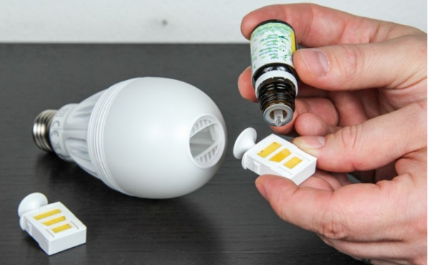 智能灯泡我们见过不少,很多设计精巧,奇形怪状,带来了视觉上的享受。但法国AWOX智能家居公司,继推出可播放音乐的LED智能灯泡后,现又在此基础上推出可以散发香味的智能灯泡Awox Aromalight Color,达到了“鸟语花香”的水平,让灯光给我们带来嗅觉上的享受。