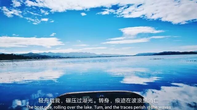 挥袖驾风轻轻临,踏草泛舟静静观;静看悠悠流水,畅怀匆匆时光。若未抛开一切,将身心置于这个妙景,又怎能感受那“闲看天上云卷云舒”的情怀。