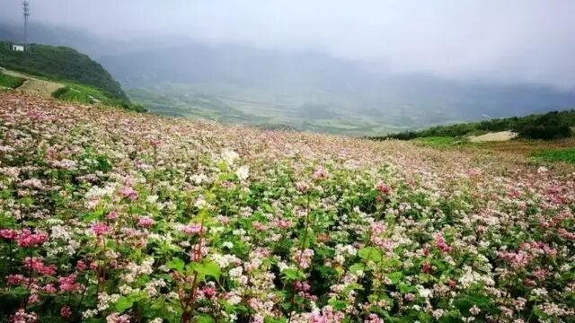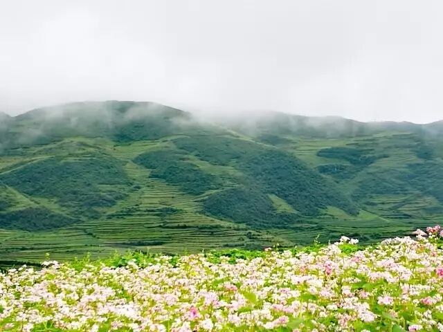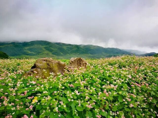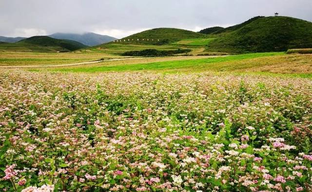 距离草海45公里,位于贵州省威宁县板底乡雄鹰村有一处“云上花海”荞花观赏园。数千亩荞花竞相绽放,红色、白色的荞花交相辉映,铺满乌蒙山巅,在高原上绽放无限魅力。
